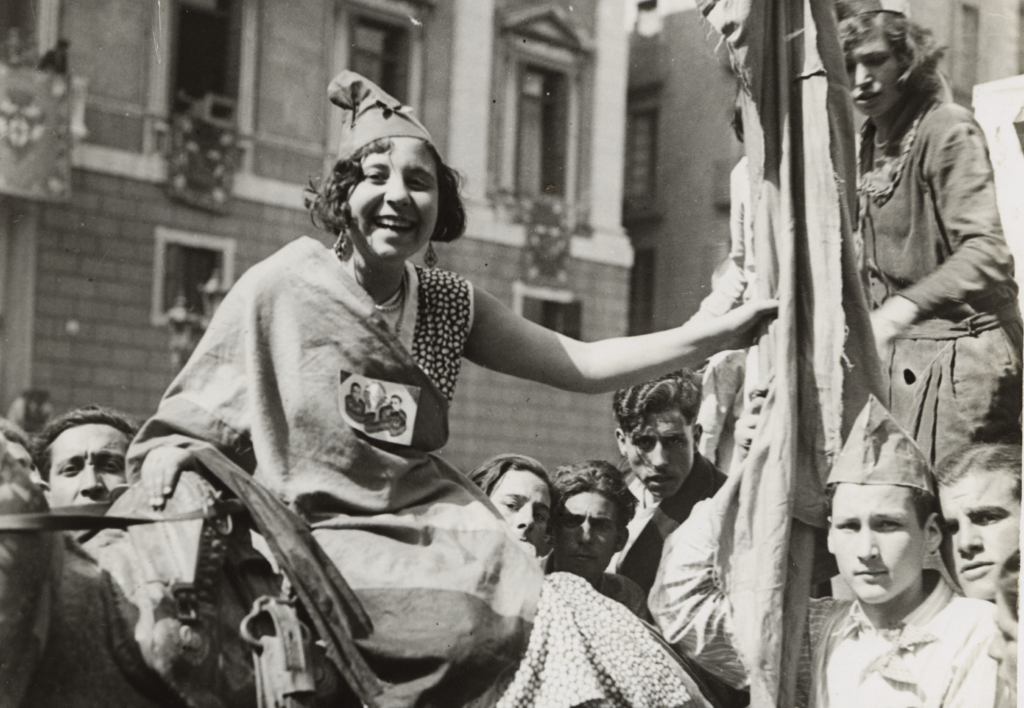 The exhibition focuses on four historical moments: the 19th century and the construction of the modern city; the Republic, the Civil War and exile; the post-war period and the Transition; and finally, the 21st century. These periods guide a display that is not chronological but instead proposes a journey through time that is both poetic and political (in the image: Popular demonstration on the occasion of the proclamation of the Republic. Militiamen in Plaça Sant Jaume, by Pau Torrents Roig and Josep Maria Lluís i Sagarra Plana; authorship as stamped on the back of the photograph. 15 April 1931. Arxiu Fotogràfic de Barcelona).