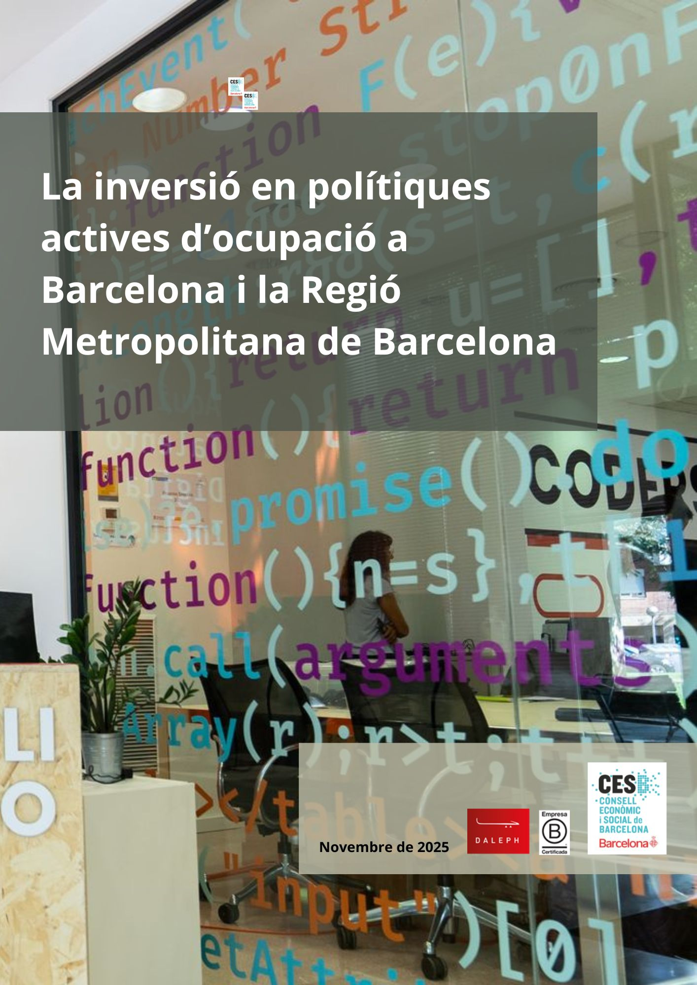 El CESB presenta l'informe "La inversió en polítiques actives d'ocupació a Barcelona i la Regió Metropolitana de Barcelona" 28/01/2026 - 10:00 Palau de la Virreina, Espai 4, La Rambla, 99, 1r pis, Barcelona Inscripció