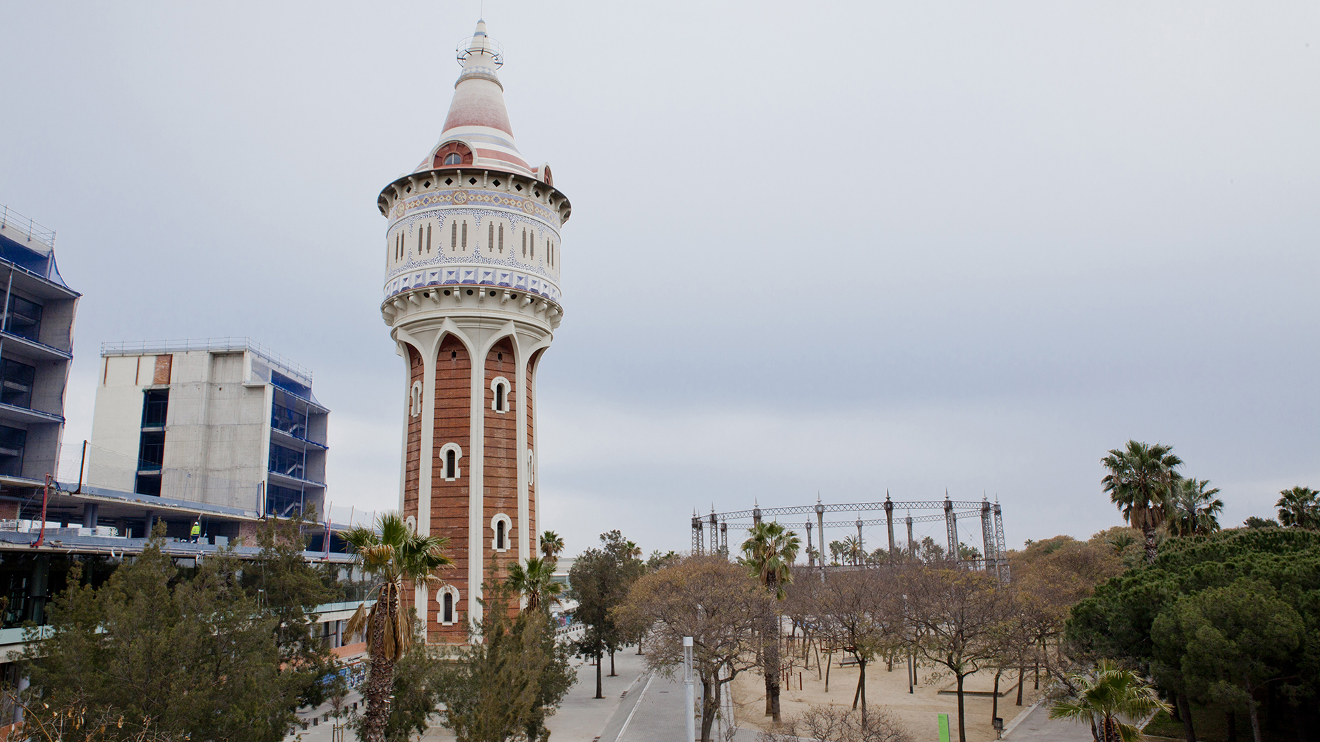 El parque de la Barceloneta y la Torre de les Aigües