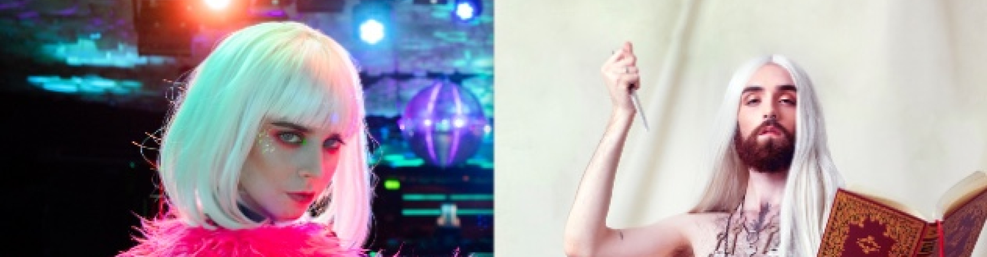La actividad continuará la semana siguiente, del 14 al 17 de julio, con un mito del pop electrónico barcelonés: los Hidrogenesse, que estarán acompañados de una performer soprano, Nebula Millarca, y su relectura de la iconografía cristiana (día 14; en la segunda imagen); el paseo entre diversas generaciones de artistas queer vinculados al Raval que nos ofrece la compañía Raval Cuir en De(s)generadas, y las performances físicas y transgresoras de Miguel Andrés (día 15); y el viaje entre el cuplé y el techno que constituyen las actuaciones de Mikey Woodbridge & Lucio Vidal y de Hombre Bosque & Carvent (día 16). Regresad al Molino el domingo, 17, por la noche, y os encontraréis una última jornada de Molinex en la cual Las Marikarmen os presentarán sus interpretaciones musicales, explosivas, queer e irreverentes, y Marga Socias os ofrecerá una performance que os invitará a mantener viva la curiosidad infantil, por más adultos y adultas que seáis.