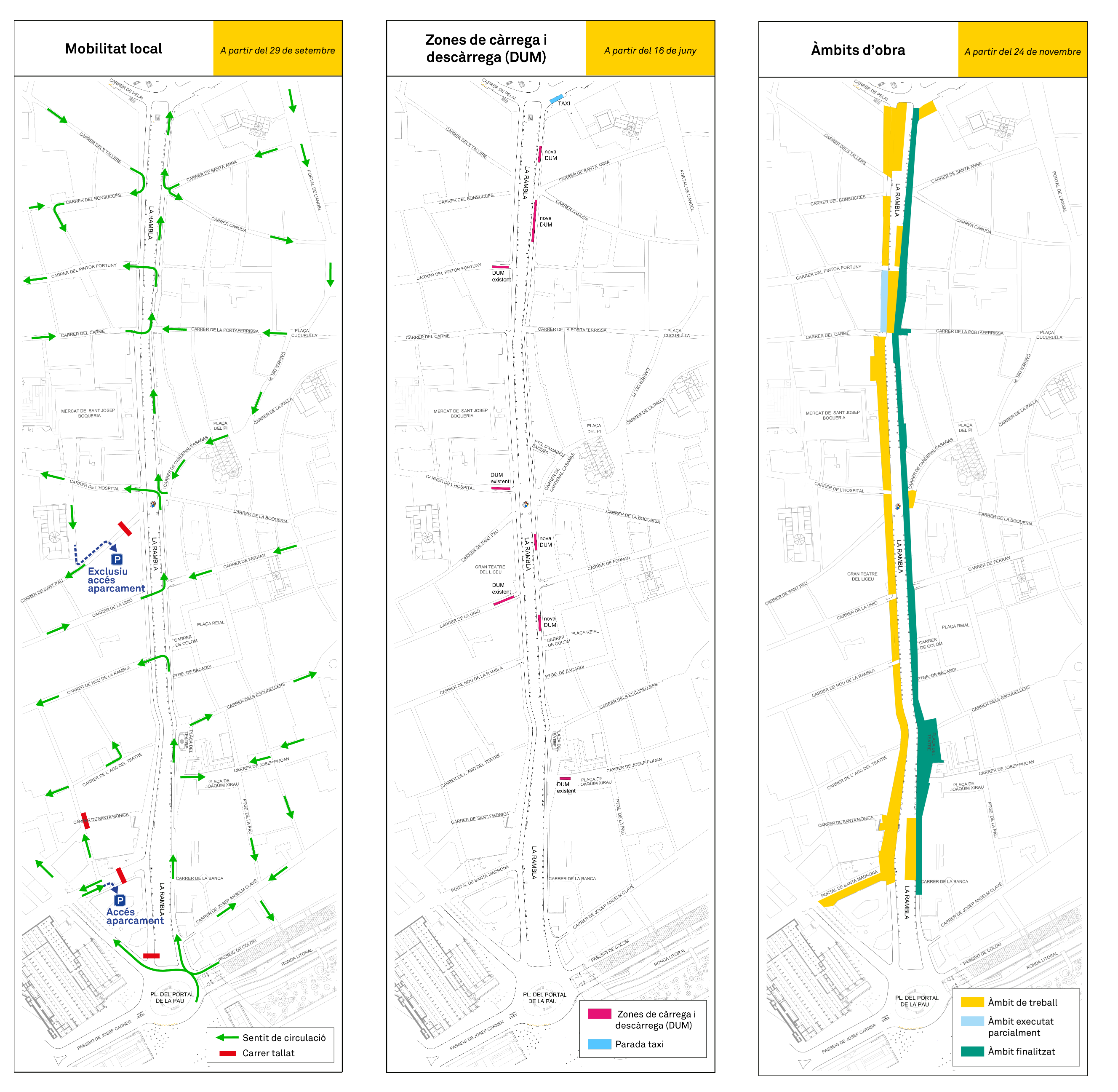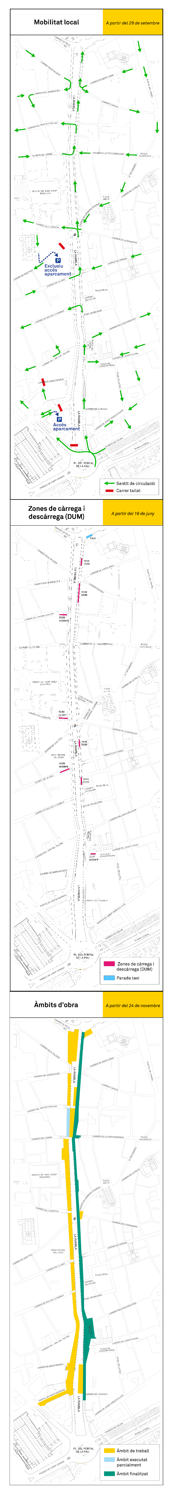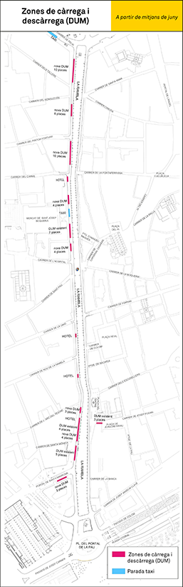 The new loading and unloading areas in La Rambla are indicated in Map 2. Loading and unloading within these neighbourhoods will remain unchanged.