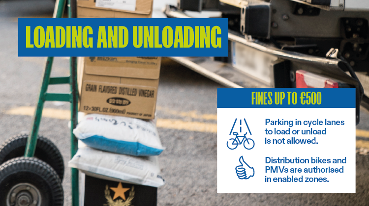 | Parking in bike lanes for loading or unloading is forbidden for all vehicles | €200 |