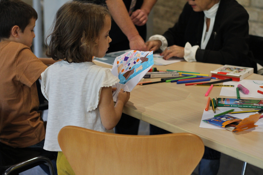 A partir d’un dibuix de tema lliure, l’activitat consisteix en la seva transformació mitjançant el plec per convertir-lo en un objecte: un ventall, reunint dibuix, forma i acció.
