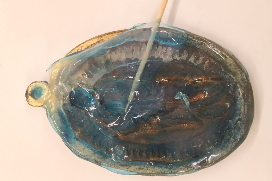 Coloració blavosa del gel d'agar i resultat després de la primera aplicació a l'anvers